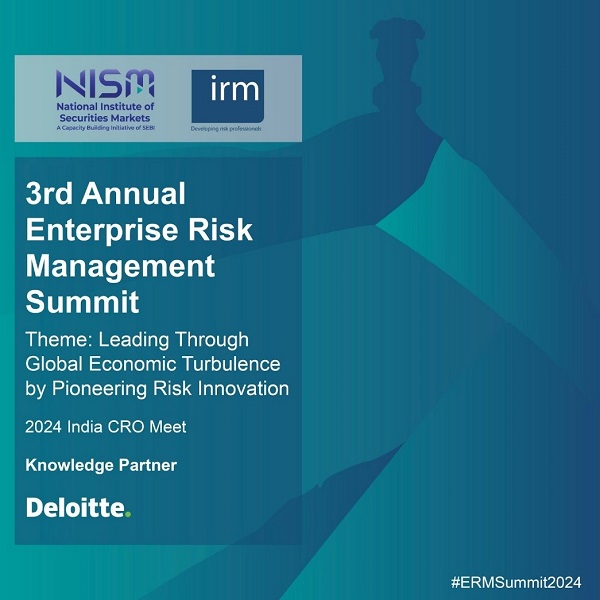 The National Institute of Securities Markets (NISM), the capacity building initiative of SEBI and IRM’s India Affiliate, world’s leading certifying body for Enterprise Risk Management examinations across 140 countries, are pleased to announce the 2024 Edition of the prestigious Annual Enterprise Risk Management Summit. Following the tremendous success of the first two editions, which featured over 20 eminent speakers and witnessed participation of more than 110 Chief Risk Officers from over 16+ sectors, the Summit has established itself as a premier gathering of India's CRO community.